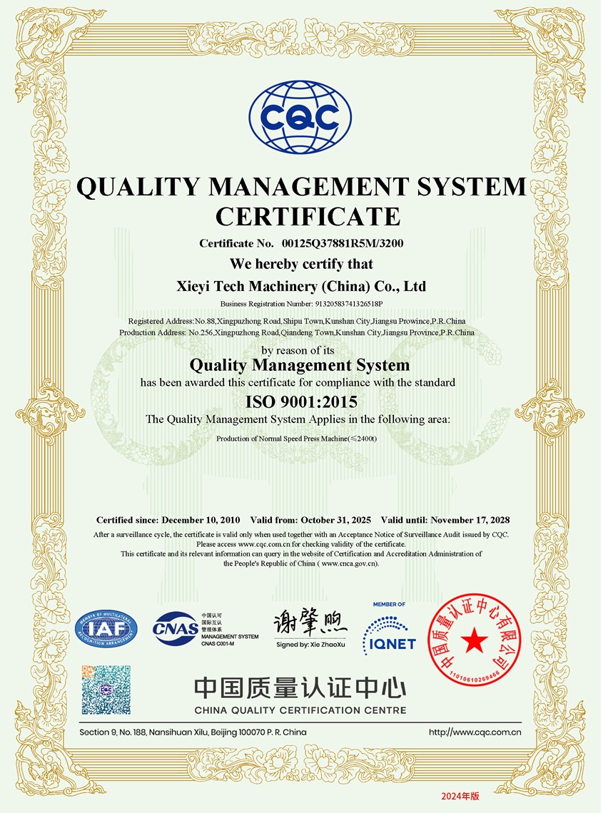 Unsere Xie Yi Tech Machinery (China) Co., Ltd. erhielt die Zertifizierung des Qualitätsmanagementsystems ISO 9001
